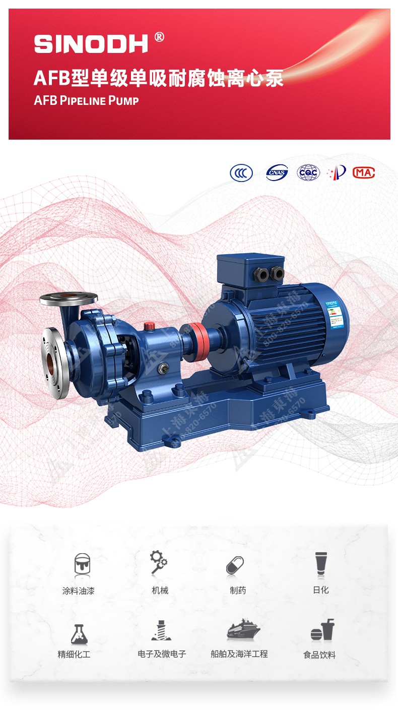 AFB型单级单吸悬臂式耐腐蚀离心泵,为必一网站自主研发生产。本系列产品适用于输送不含固体颗粒,有腐蚀性液体。被输送介质温度为-20℃~200℃,泵的进口压力不能大于0.2MPa,广泛用于石油、化工、冶金、合成纤维、制药、食品、酿造等工业部门,也可供工矿、企业及城市供水、排水之用。