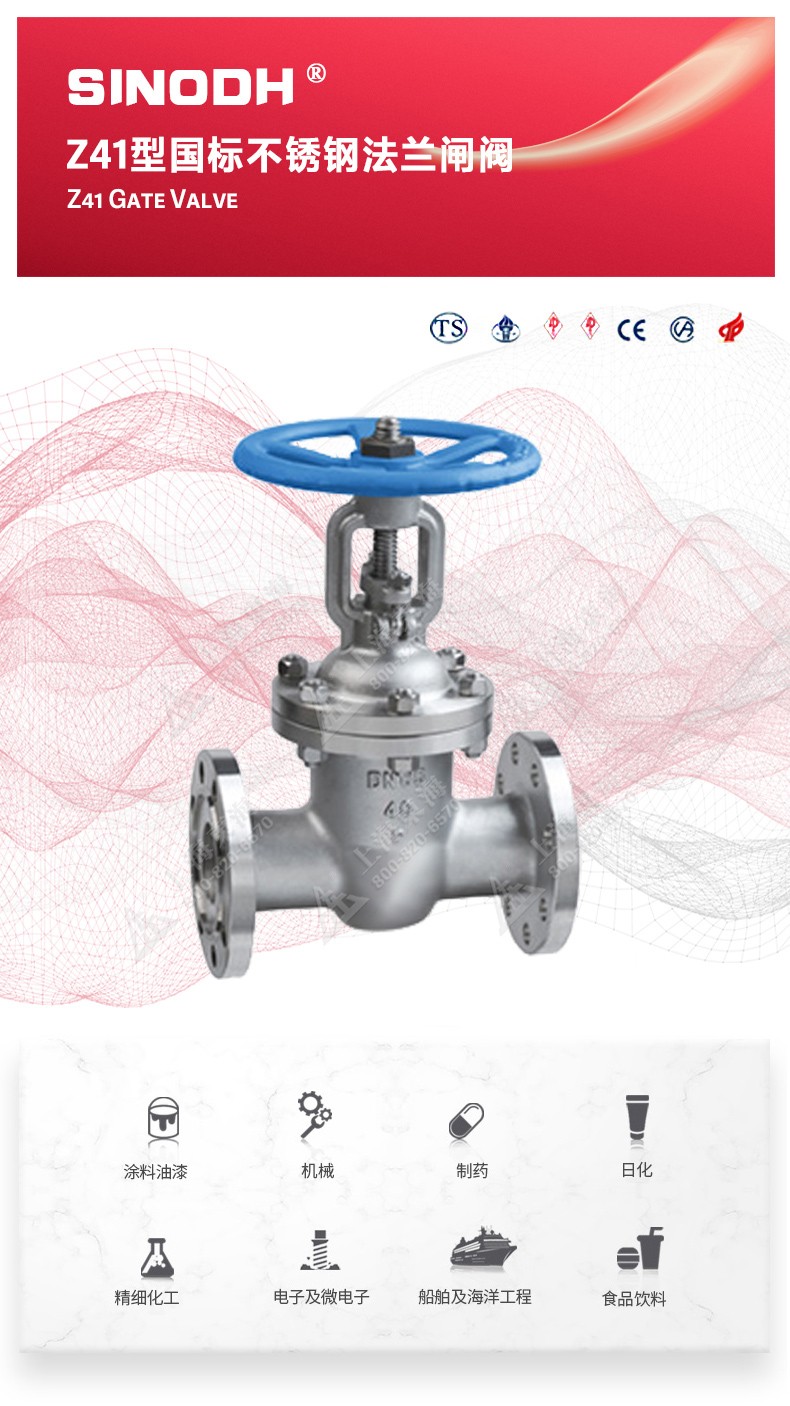 Z41型不锈钢闸阀,为必一网站自主研发生产。本产品是一种最常见的启闭阀,利用闸板的上下工作来接通(全开)和截断(全关)管道中的流体介质。此类闸阀广泛用于自来水、污水、建筑、石油、化工、食品、医药、轻纺、电力、船舶、冶金、能源系统等体管线上作为调节和截流装置使用。
